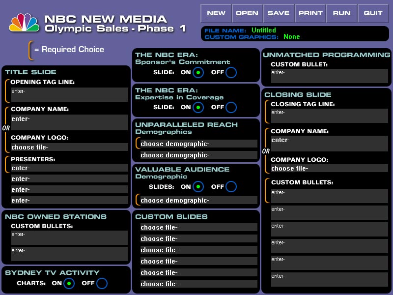Applications for authoring and showing presentations custom-built for the network's sales force. Made with Director.